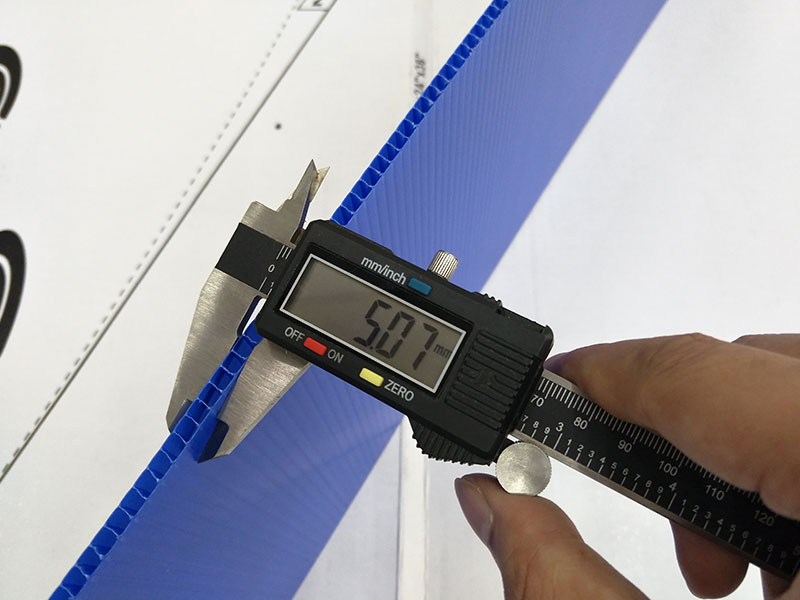 押出成型後的pp瓦楞板,隨機抽樣檢驗,讓所有板材保有相當的水準和品質條件。